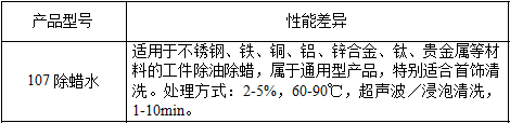2、除蠟水系列產(chǎn)品(共有五種型號:107、108、109、110、110B)。