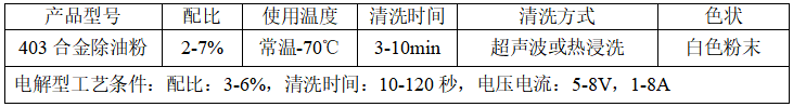 2、除油粉系列產(chǎn)品(共有三種型號(hào):401、402、403)。