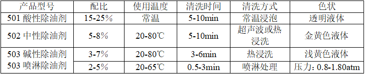 2、除油劑系列產(chǎn)品(共有三種型號:501、502、503)。