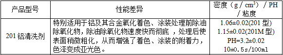 2、鋁清洗劑系列產(chǎn)品(共有三種型號201、201M、202)。