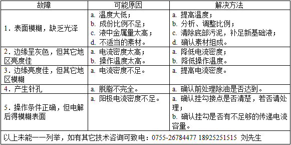 備注:不需加入任何其它添加劑即可使用(原液使用),適當(dāng)添加20-30%硫酸拋光效果會(huì)更佳。鈦板、鉛板或不銹鋼板做陰極(負(fù)極),工件做陽極(正極),建議陽級(jí)緩慢移動(dòng),并適當(dāng)攪拌避免局部過熱。溫度60℃為佳,工件體積大設(shè)計(jì)電流、電壓大,工作時(shí)間長(zhǎng)。